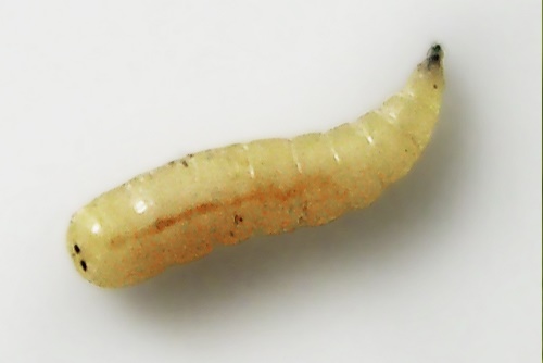 a small creature like a worm that is the young form of a fly and lives in decaying food, flesh etc