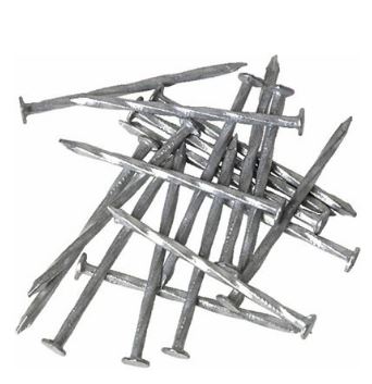a thin pointed piece of metal with a flat top, which you hit into a surface with a hammer, for example to join things together or to hang something on