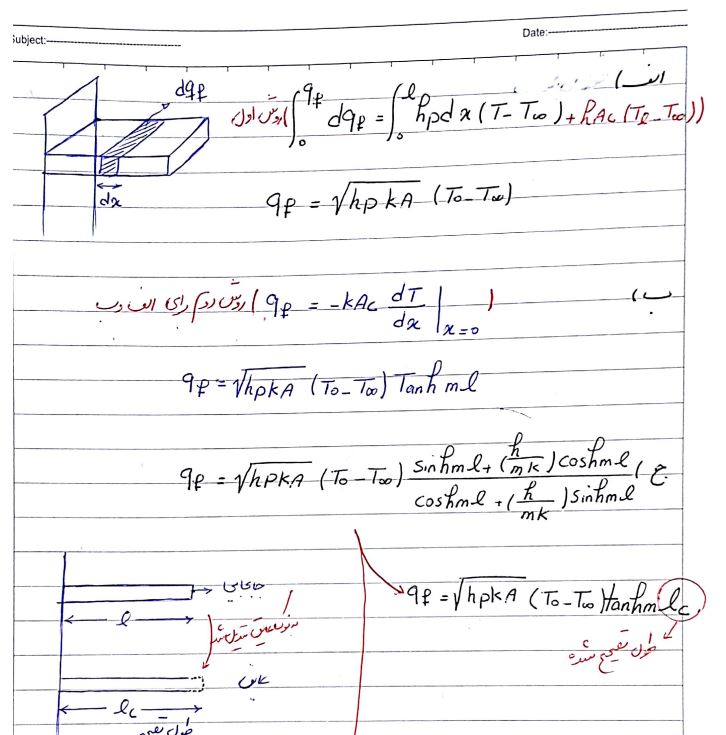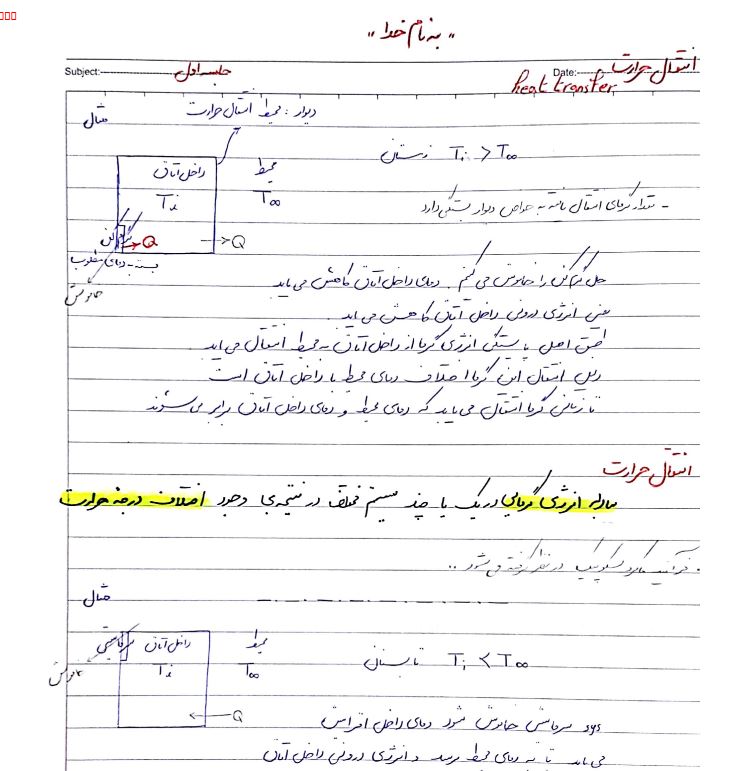 جزوه‌ دست نویس انتقال‌ حرارت‌ استاد‌ شجاعی