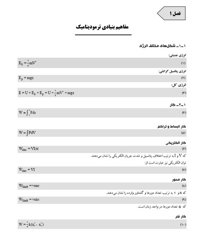 خلاصه فرمول های ترمودینامیک 1 و 2