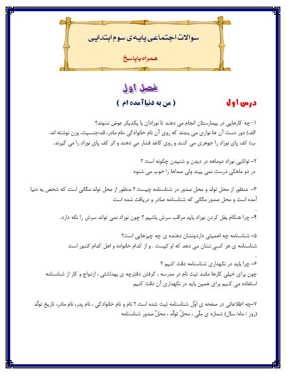 📚 مجموعه مطالعات اجتماعی سوم دبستان / (کاربرگ – نمونه سوالات – آموزش )