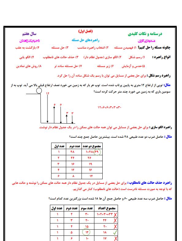 درس نامه و نکات کلیدی ریاضی هفتم