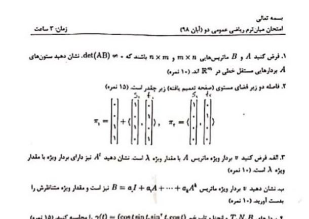 میان ترم ریاضی عمومی 2 با پاسخ کد 2364