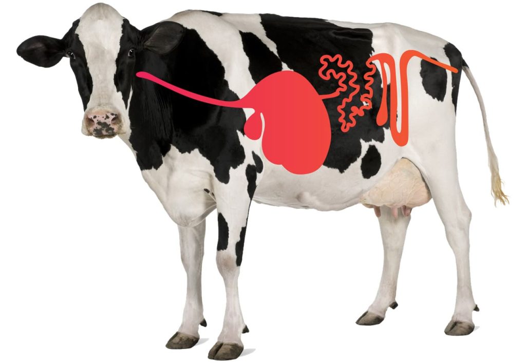 technical an animal such as a cow that has several stomachs and eats grass